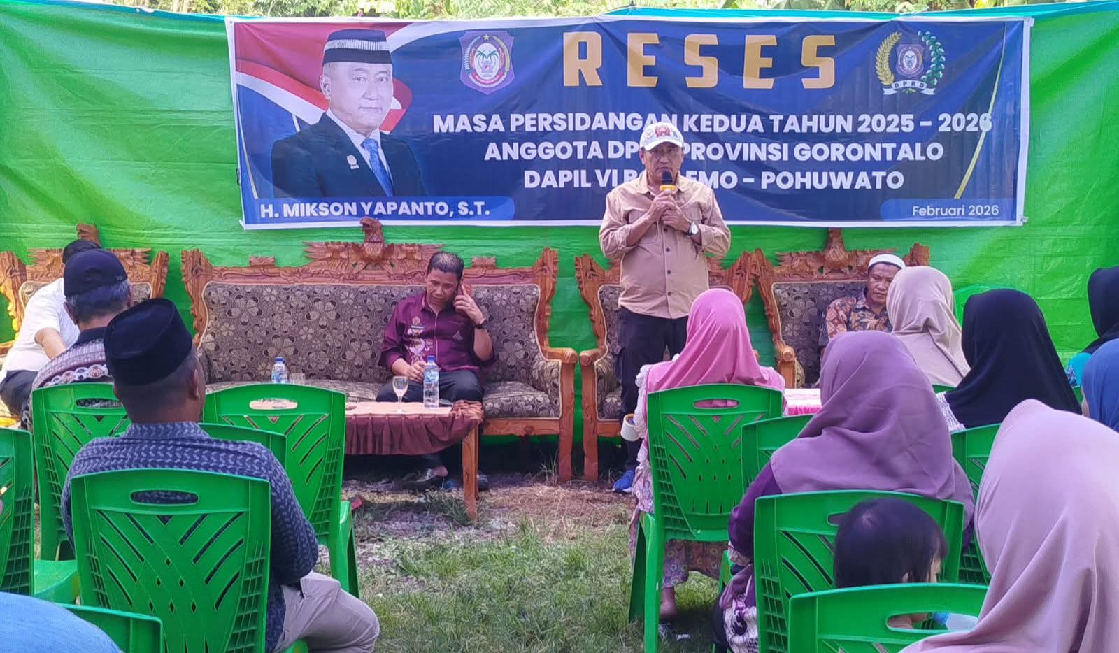 POHUWATO – Ketua Komisi II DPRD Provinsi Gorontalo, Mikson Yapanto, melaksanakan reses masa persidangan kedua tahun 2025–2026 di Desa Popayato, Kecamatan Popayato, Kabupaten Pohuwato, Selasa (10/2/2026).